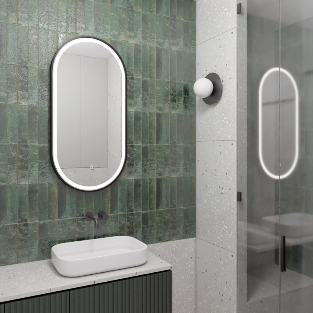 Swiss Aqua Technologies 40x80 cm miroir suspendu ovale avec éclairage LED et capteur, cadre en aluminium, noir (SATZOVLED4080CE)