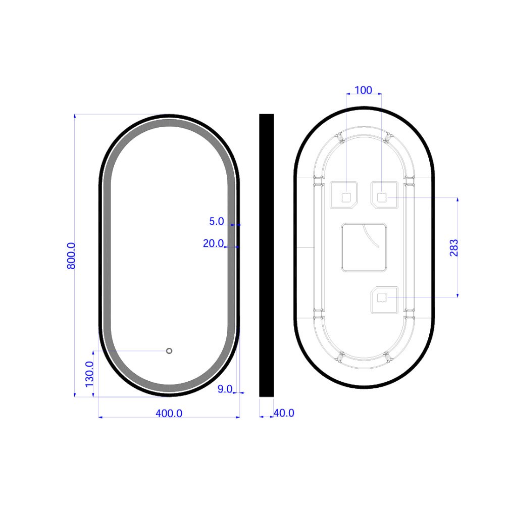 Caractéristiques du miroir suspendu ovale 40x80 cm avec éclairage LED et capteur, cadre en aluminium, Swiss Aqua Technologies, noir (SATZOVLED4080CE) :