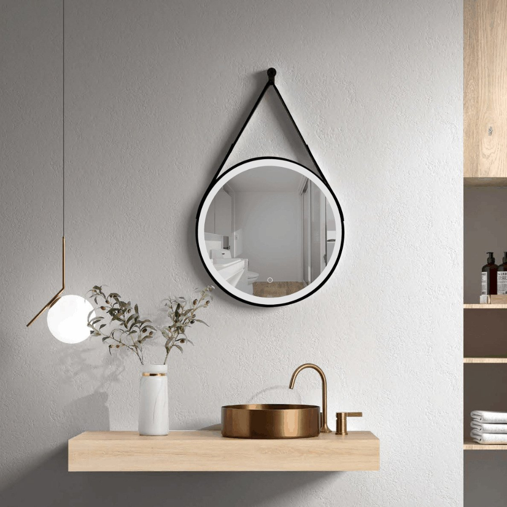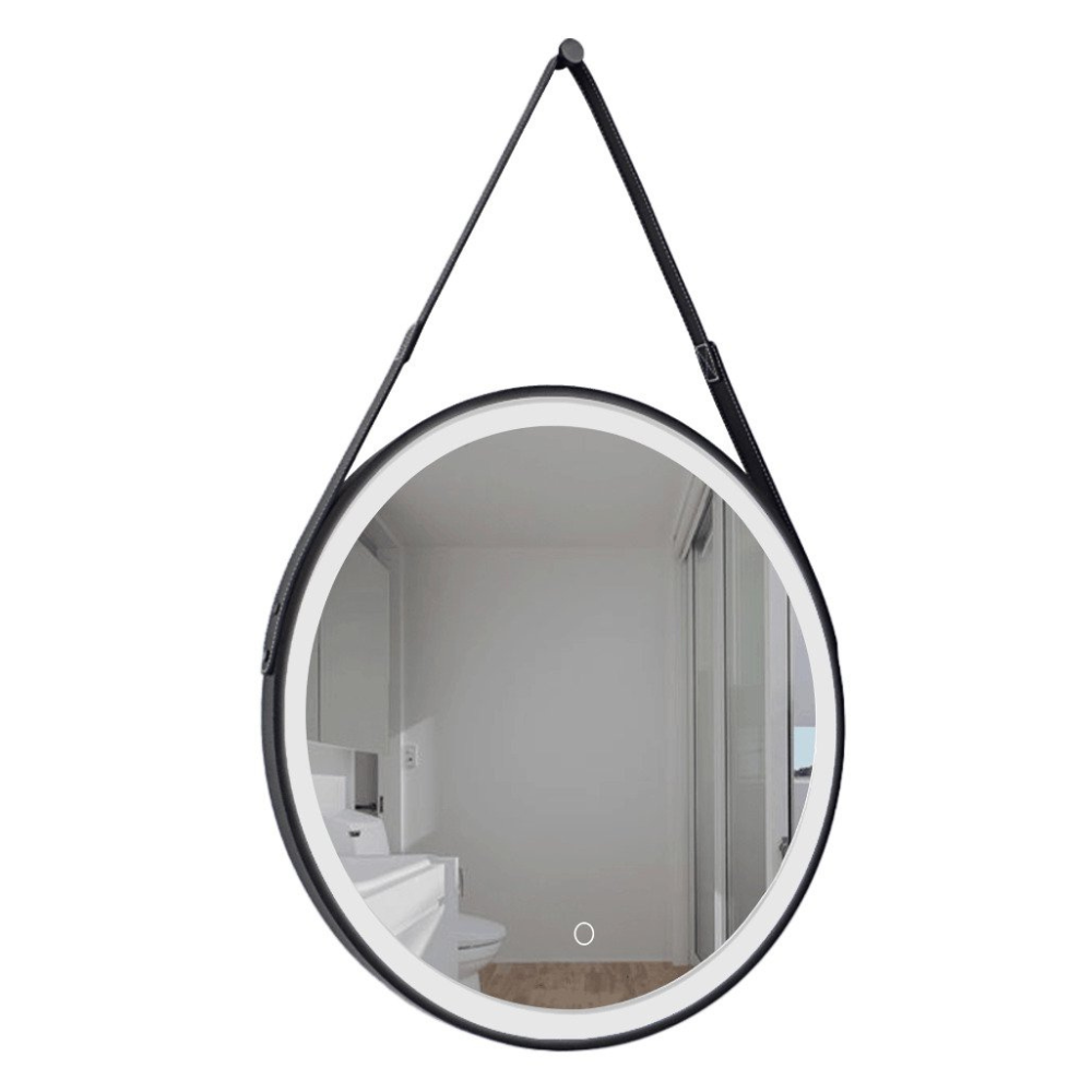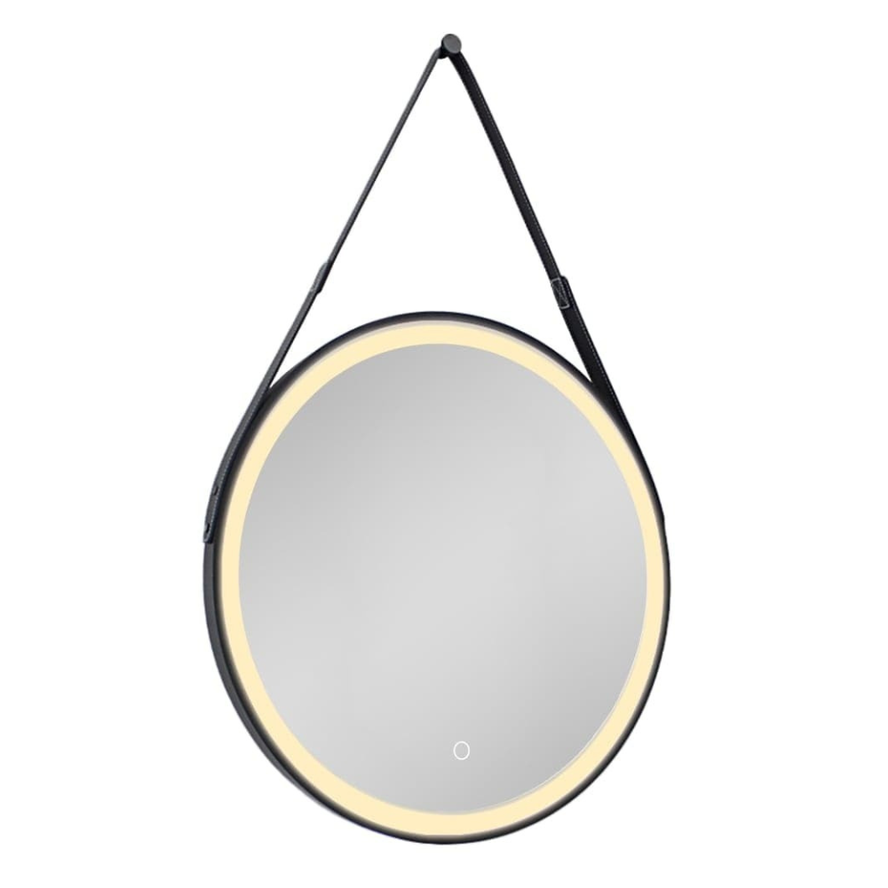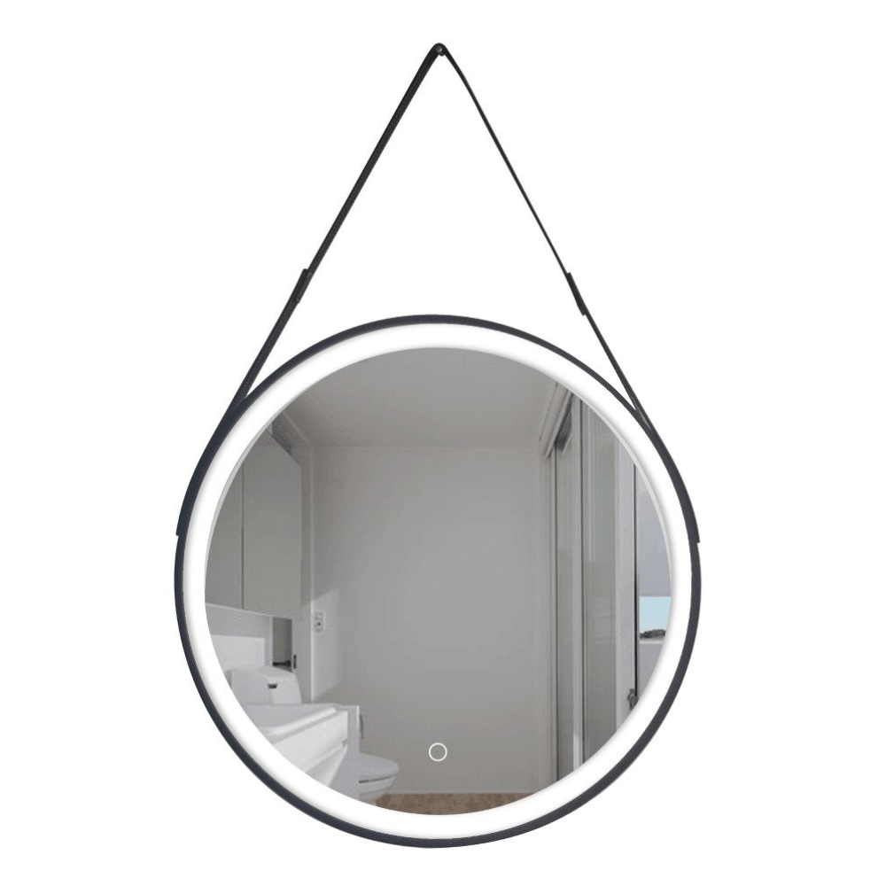Swiss Aqua Technologies 60x60 cm miroir suspendu rond avec éclairage LED et capteur, cadre en métal, noir (SATZREMLED60CE)