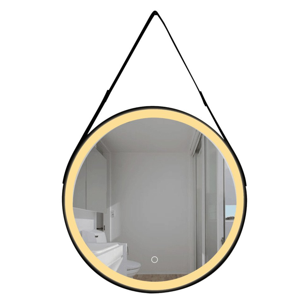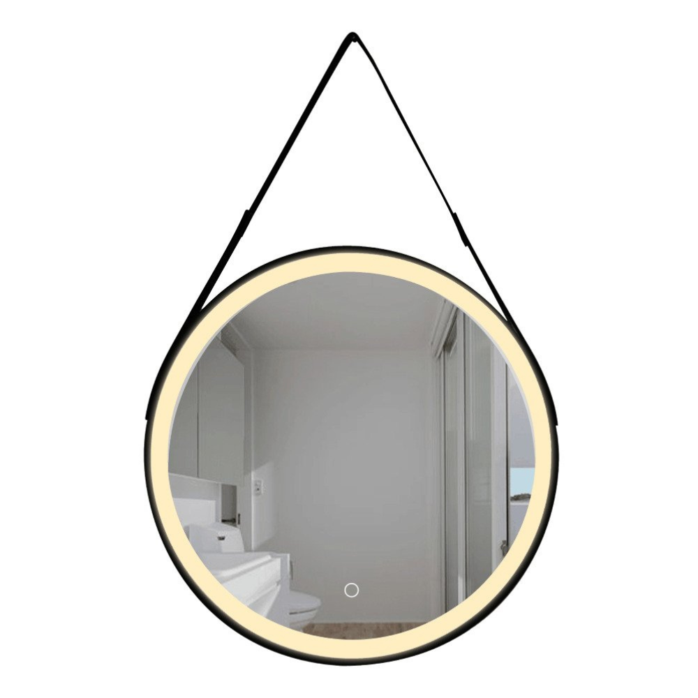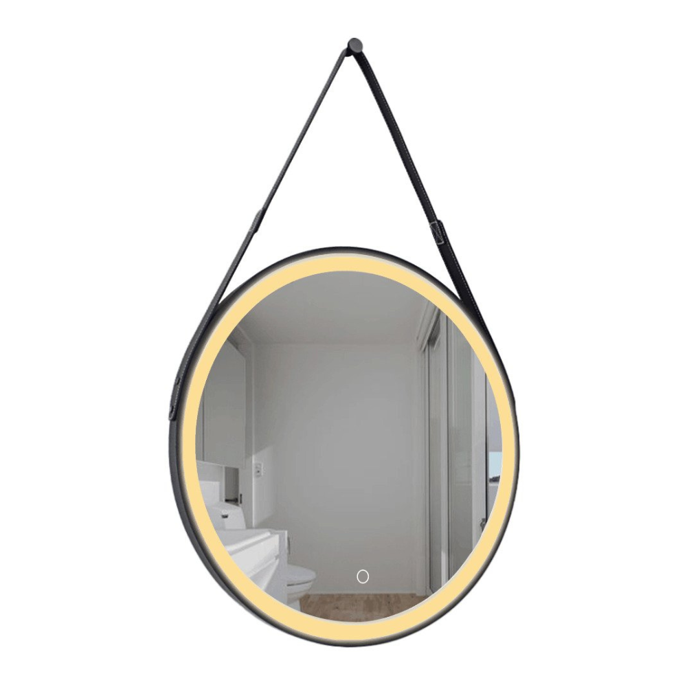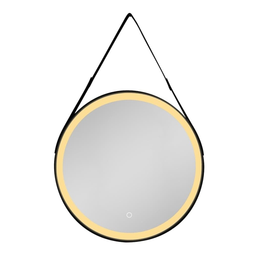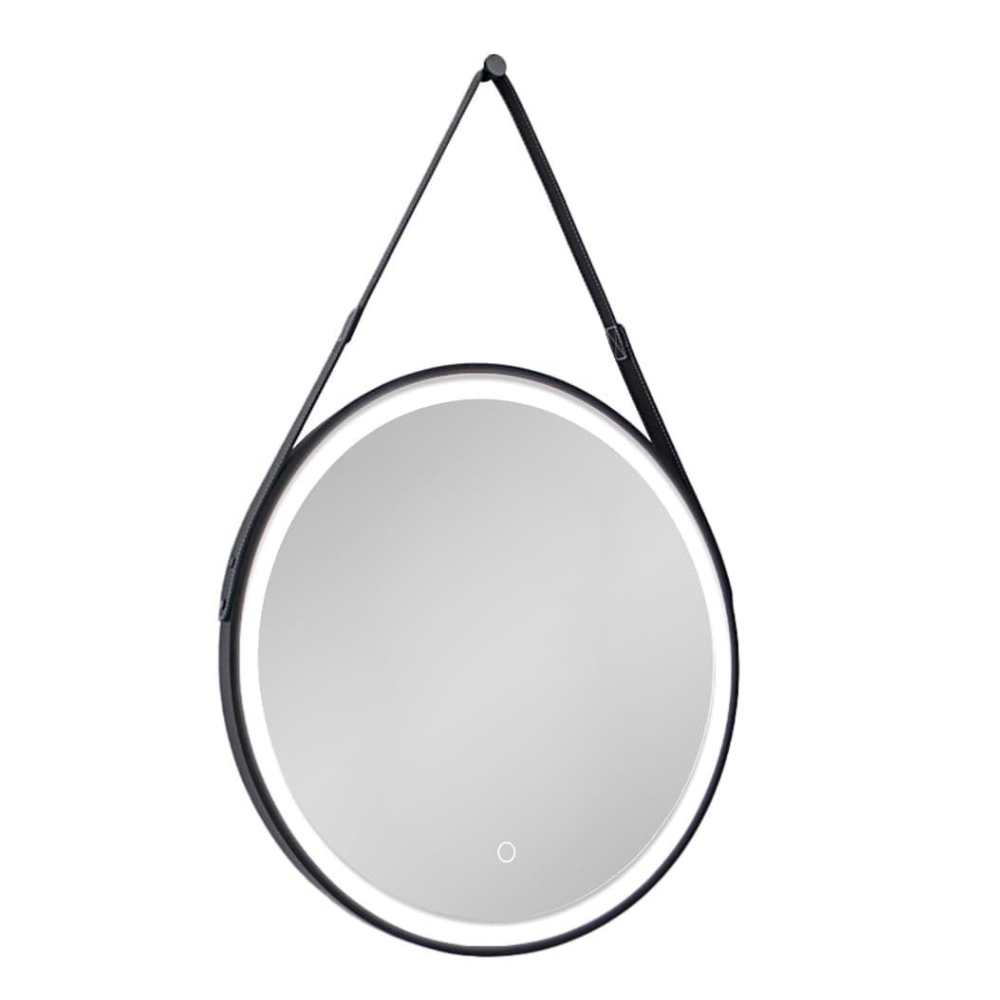 Swiss Aqua Technologies 60x60 cm miroir suspendu rond avec éclairage LED et capteur, cadre en métal, noir (SATZREMLED60CE)