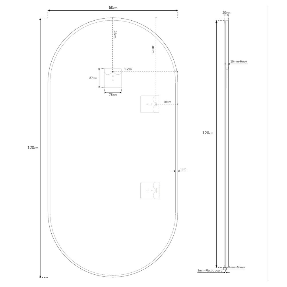 Caractéristiques du miroir suspendu ovale 60x120 cm, cadre en aluminium, Naturel B-Way, noir (ZBWOV12060C) :