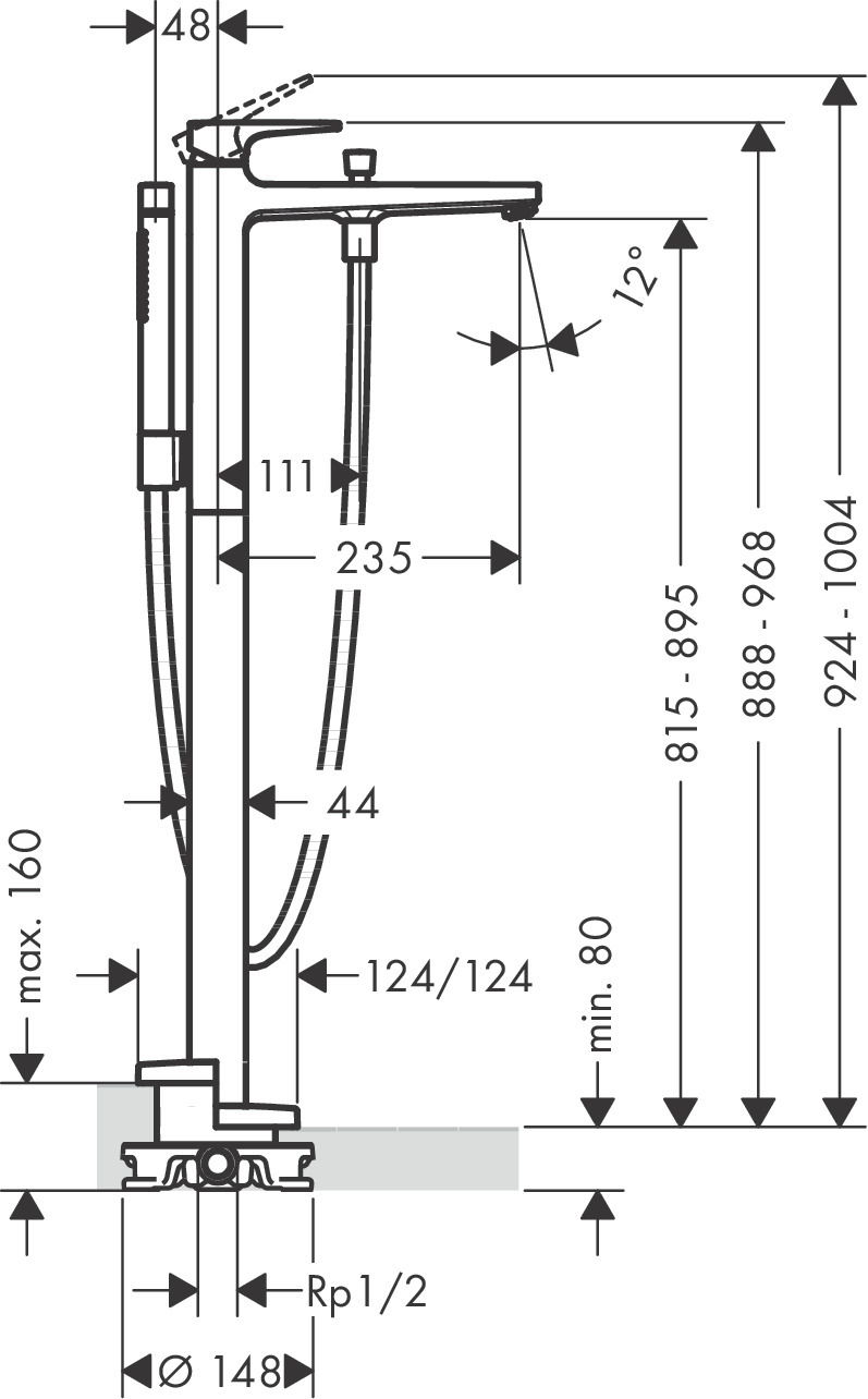 - Comprenant : mitigeur bain/douche sur pied, douchette tube, flexible de douche, support de douche