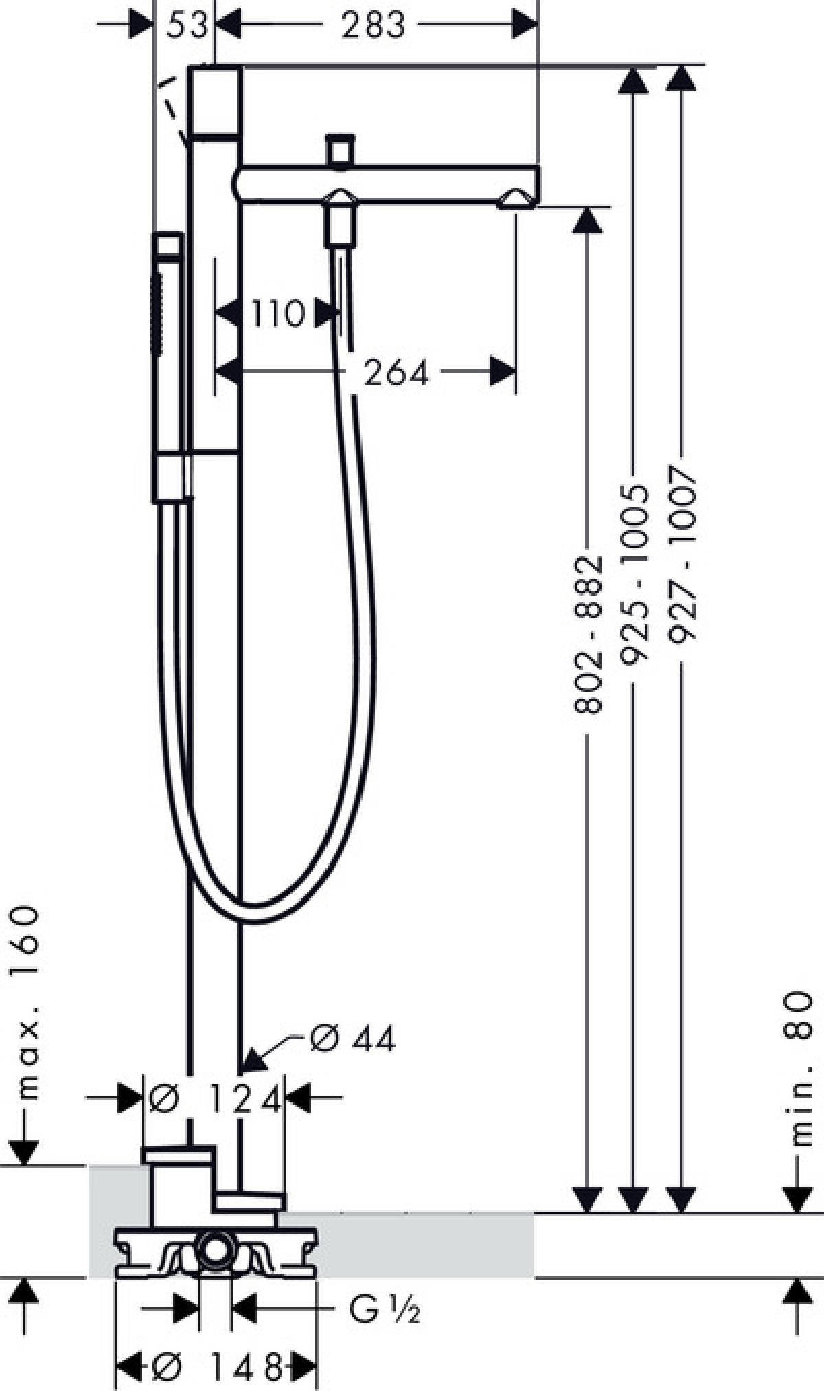 Axor Mitigeur bain/douche, set de finition pour montage au sol, poignée zéro (45416000)