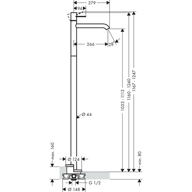 Axor Mitigeur de lavabo encastré au sol, poignée étrier sans tirette ni vidage (38037000)