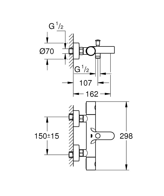 Caracteristiques du mitigeur thermostatique bain/douche 1/2, GROHE Grohtherm 800 cosmopolitan, chrome (34772000) :