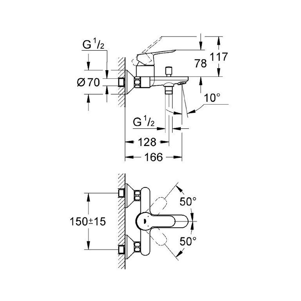 Caractéristiques du Mitigeur bain/douche fixation murale, Chrome, Grohe BauLoop (G-23341000) :