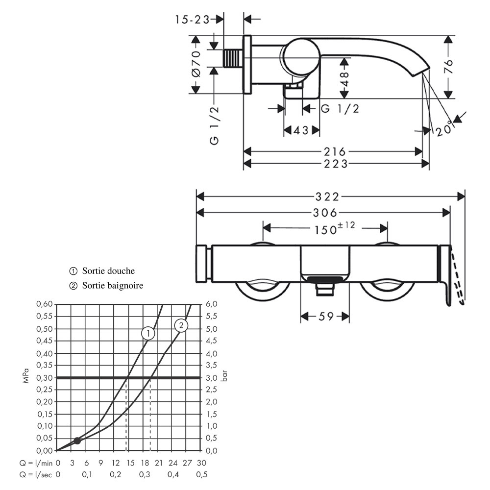 débit du bec déverseur sous 3 bars: 19,4 l/min