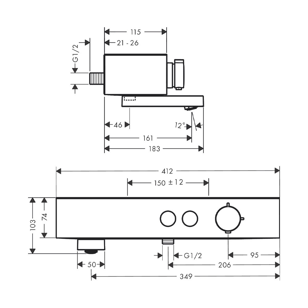 - ShowerTablet Select Mitigeur thermostatique bain/douche 400 avec tablette et bec déverseur rotatif, Chrome (24340000)