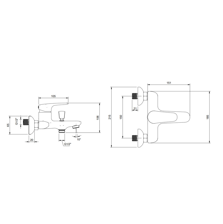 - Espacement des embouts de raccordement en mm: 150