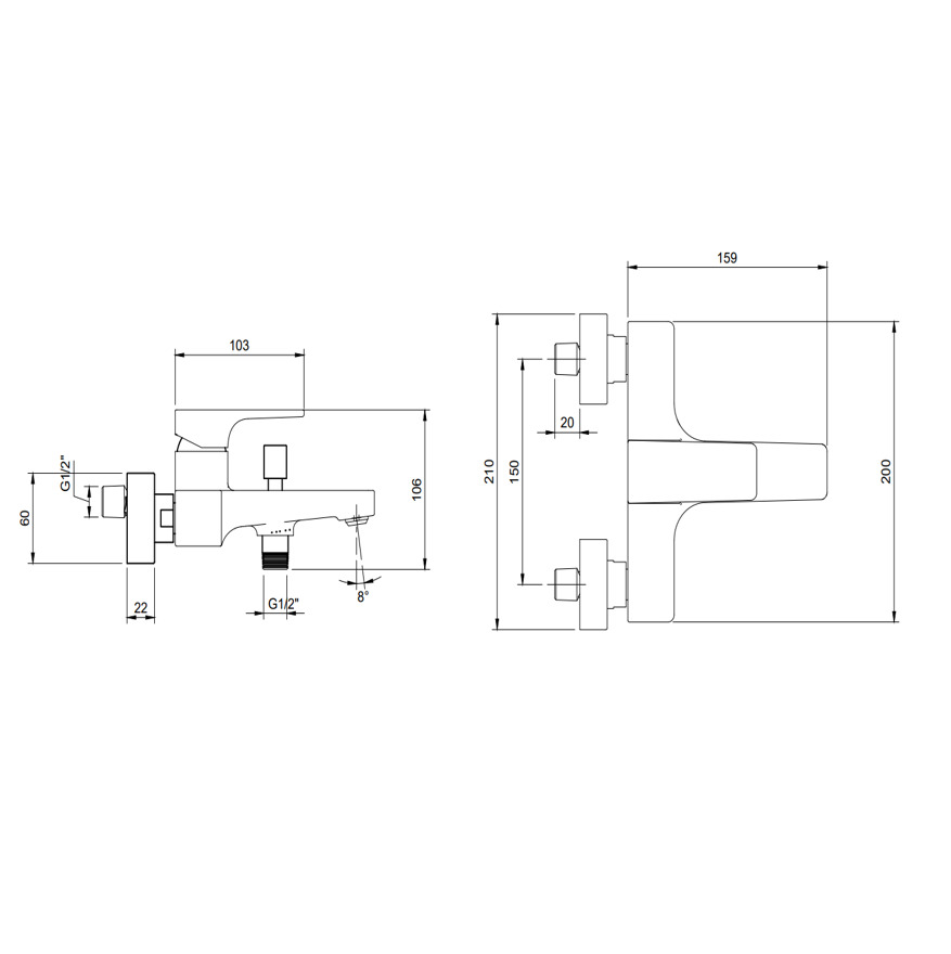 - Espacement des embouts de raccordement en mm: 150