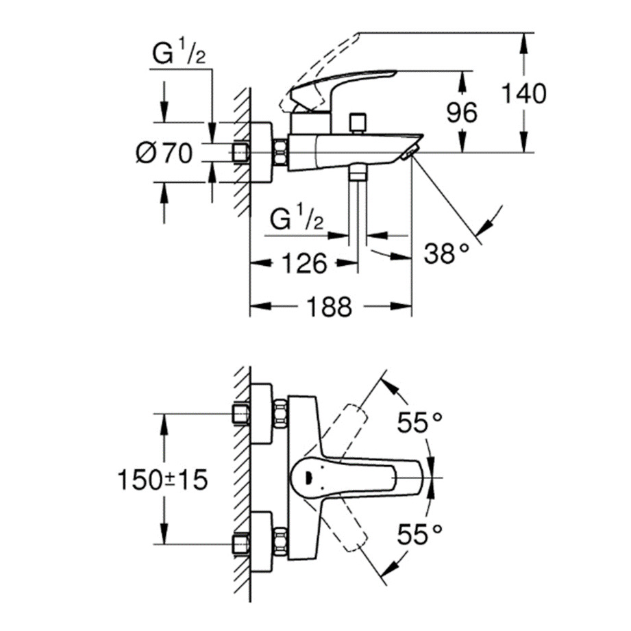 Caractéristiques du EUROSMART Mitigeur monocommande bain/douche 1/2" (33300003):