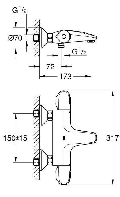 Caractéristiques du GROHTHETM 1000 Mitigeur Thermostatique Bain/Douche, Chrome (34816003):