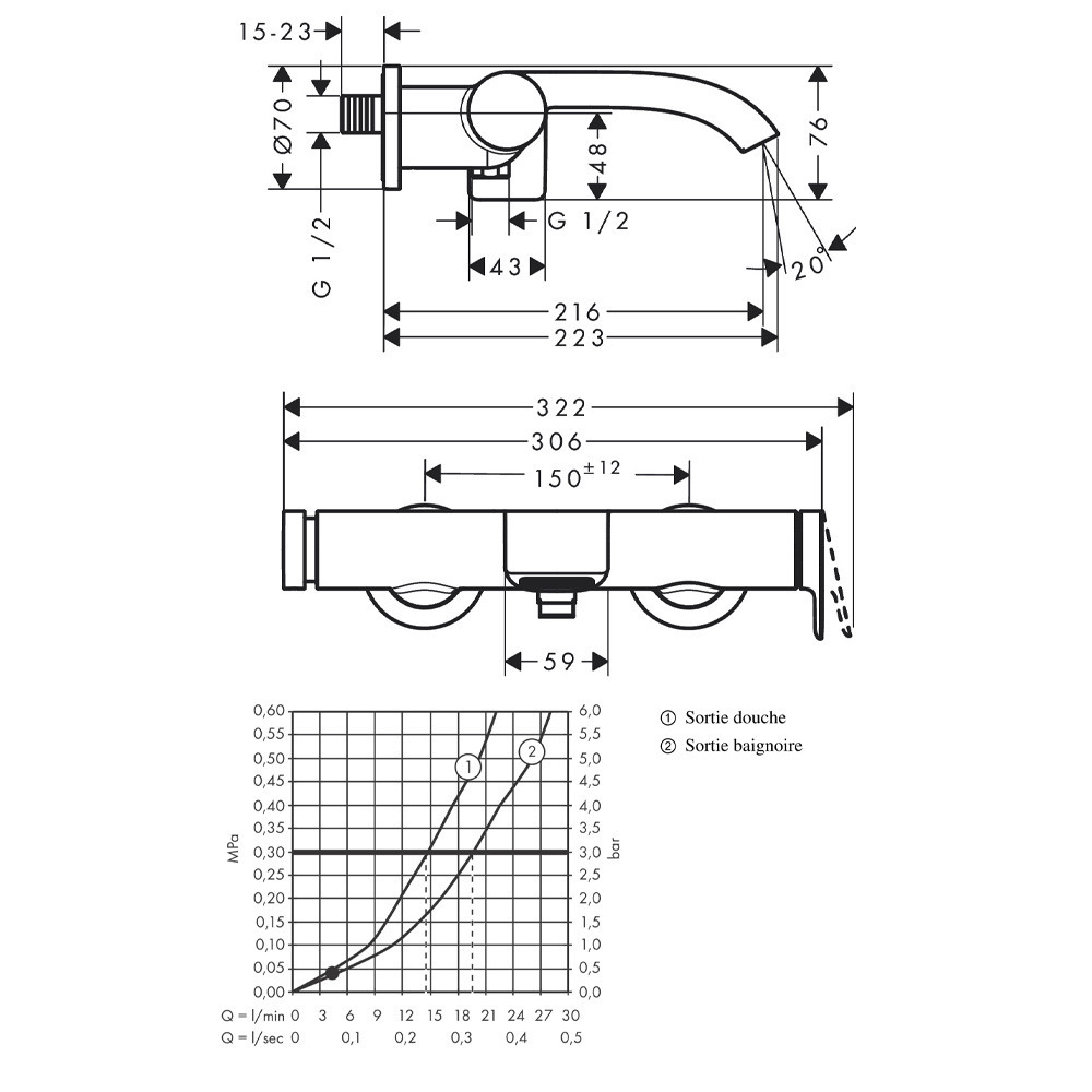 Caractéristiques du mitigeur thermostatique bain / douche Hansgrohe Ecostat 1001 CL :