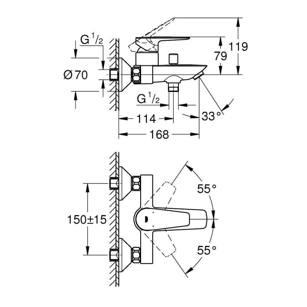 Caractéristiques du Mitigeur monocommande Bain/douche, Grohe BauEdge, Chrome (23914001) :