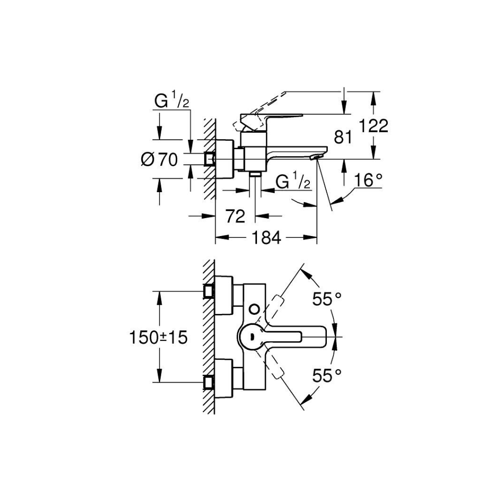 Caractéristiques du mitigeur monocommande bain/douche, Grohe Lineare, gris (G33849AL1) :