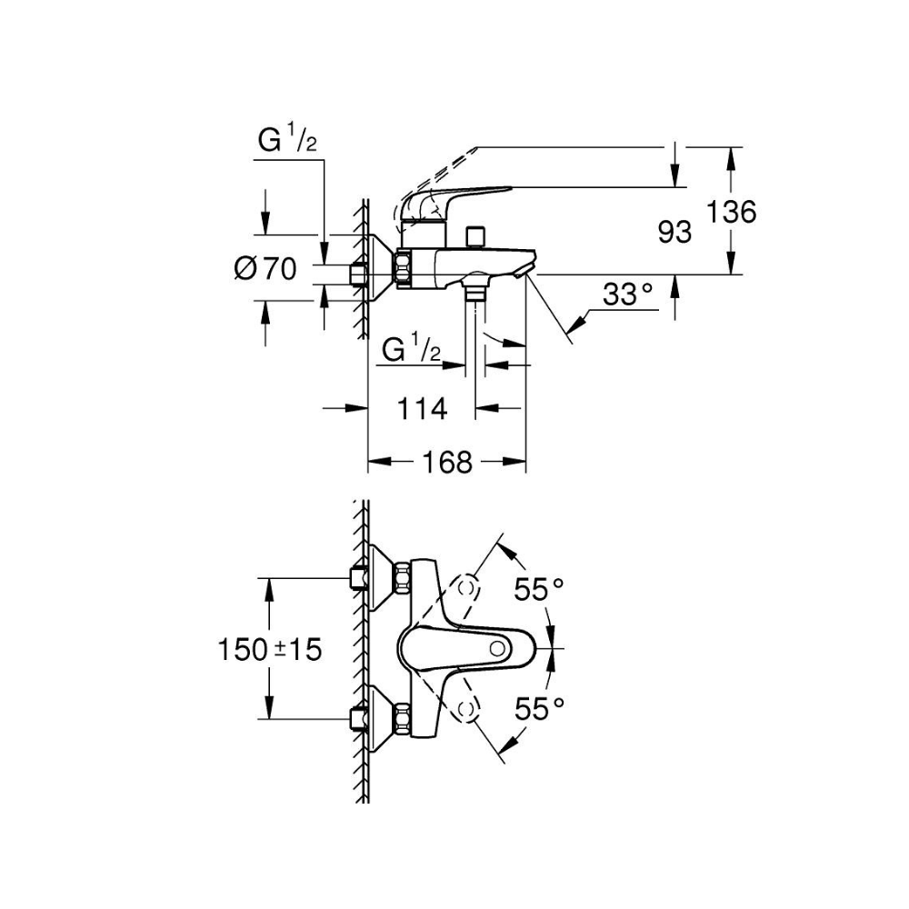 Caractéristiques du mitigeur monocommande bain/douche, Grohe Swift, chrome (G24335001) :
