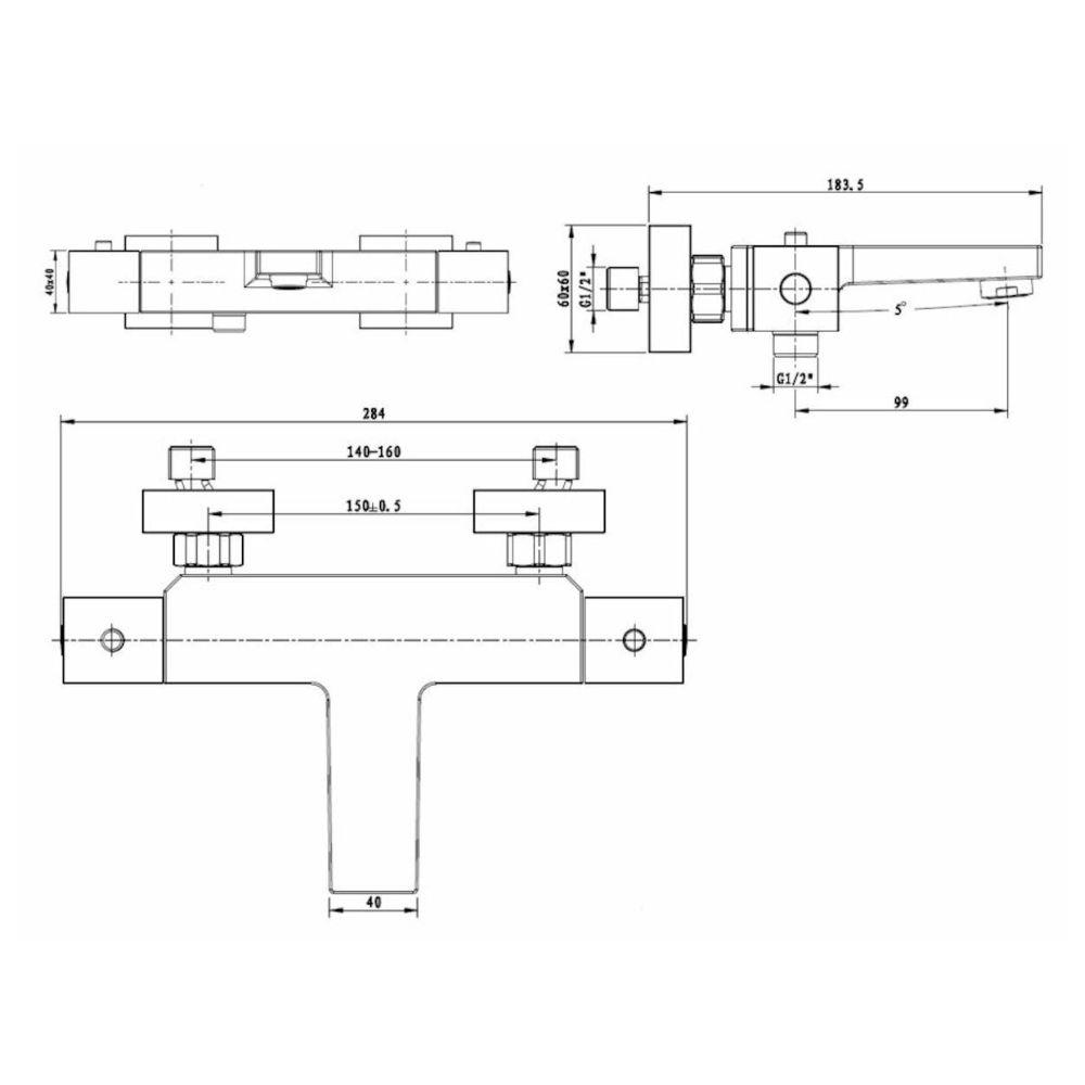 SIKO mitigeur de bain mural thermostatique sans ensemble de douche. Design angulaire. En finition chromée. Pas du robinet 150 Mp.