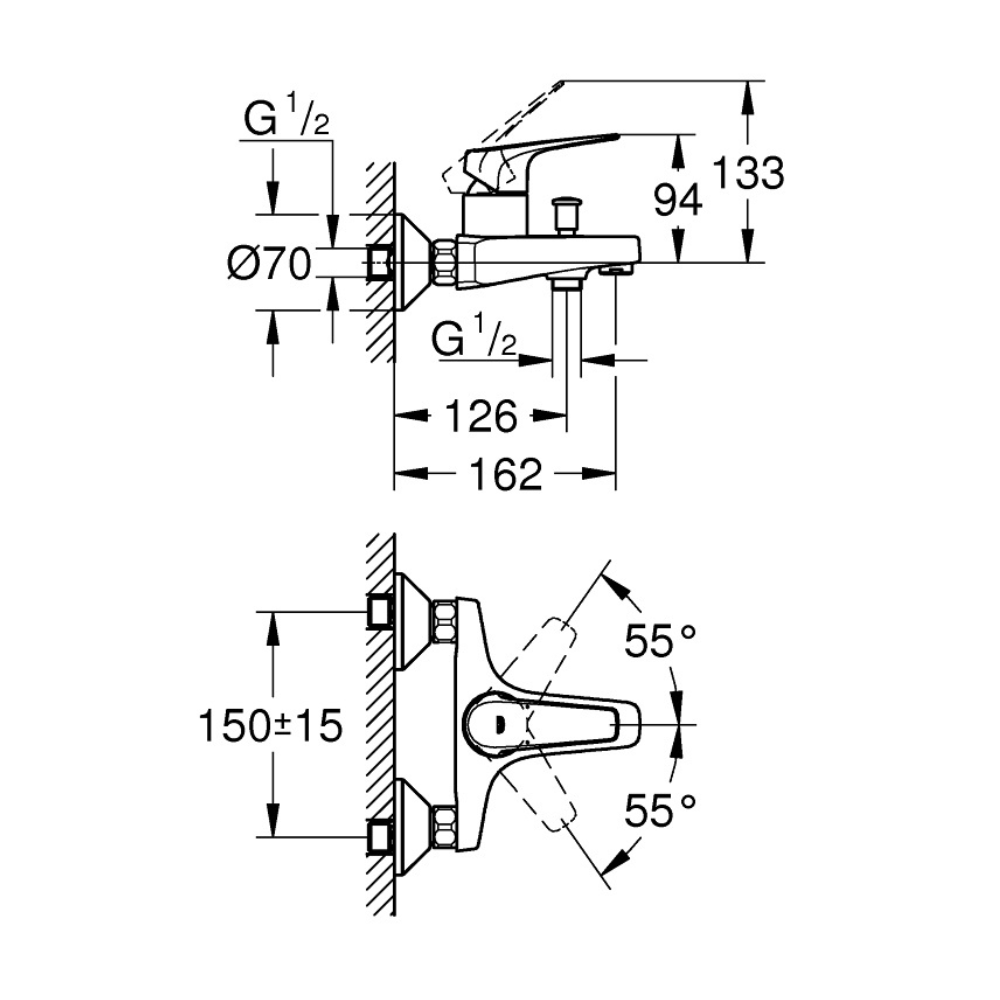 Caractéristiques du mitigeur de baignoire 1/2", Grohe BauFlow, chrome (23601000) :