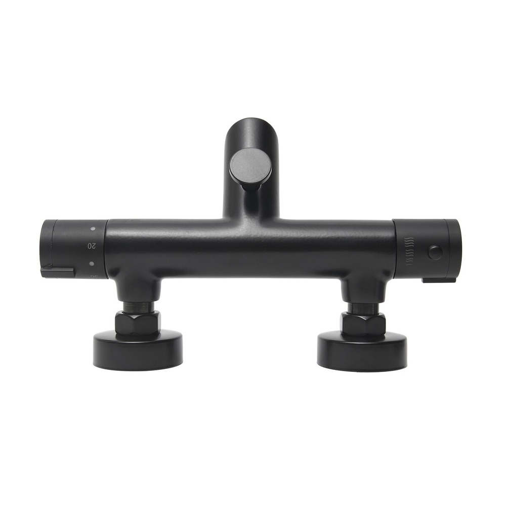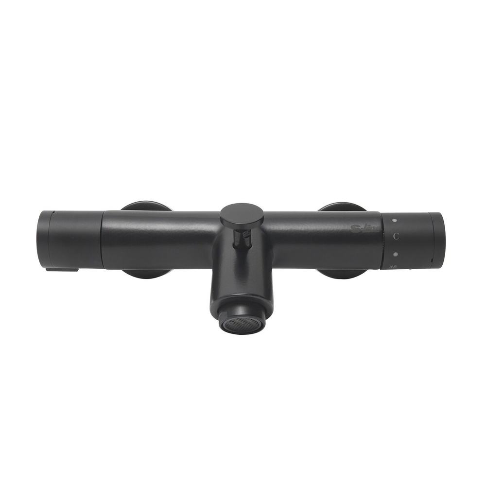 Robinet de bain Mural thermostatique sans Ensemble de douche. En couleur noire. Distance entre les robinets 150 Mp. Avec finition SAT.
