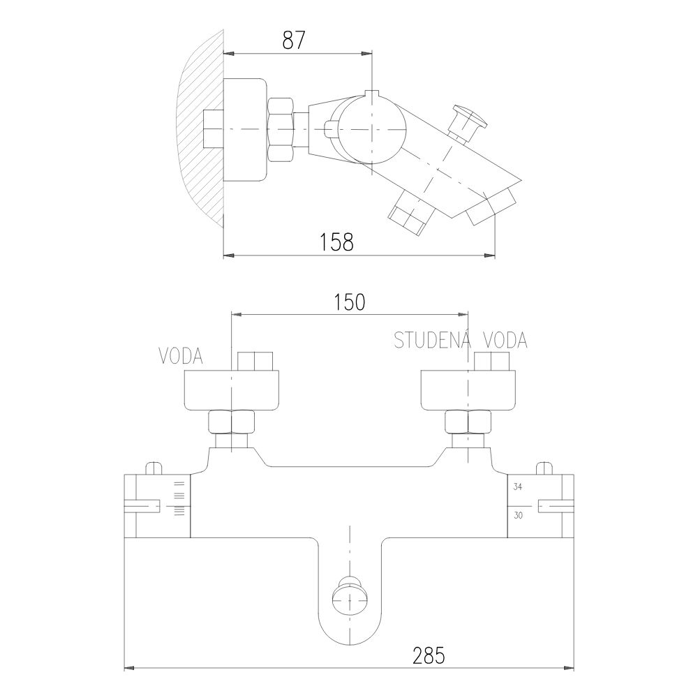 Caractéristiques du mitigeur de baignoire thermostatique mural, 150 mm, Siko S-Line Pro, chrome (SIKOBSLPRO222T) :