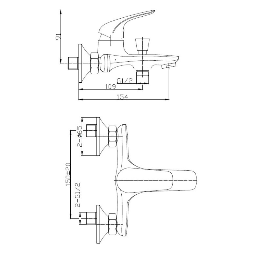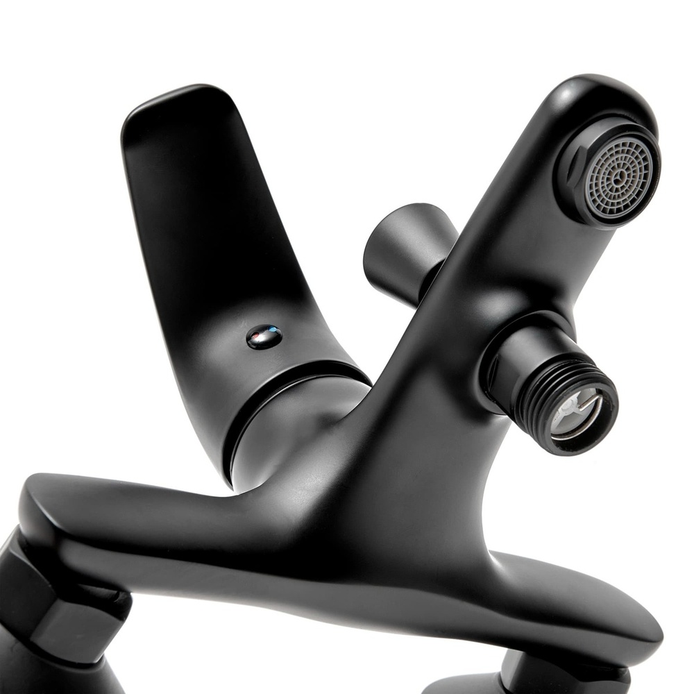 Ensemble Mural Robinet de bain sans douche. En couleur noire. Distance entre les robinets 150 Mp. Avec finition SAT.