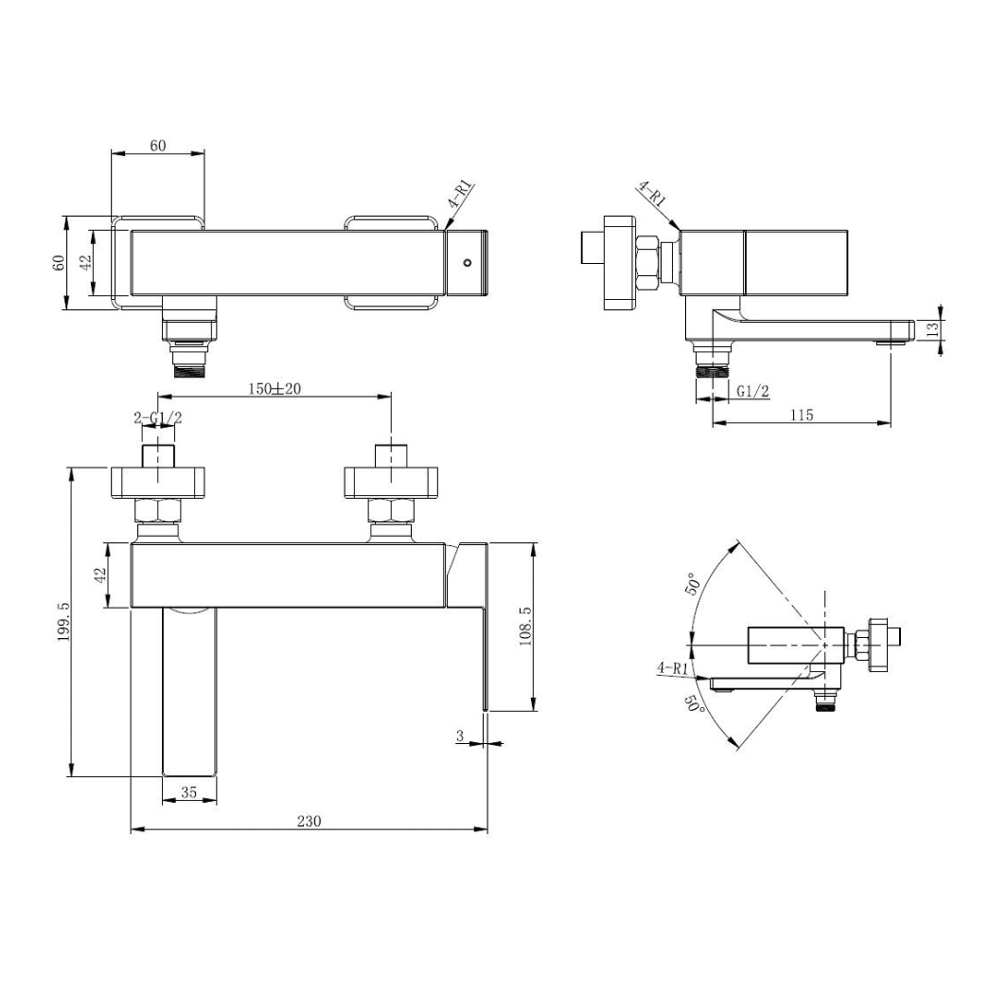 Caractéristiques du mitigeur de baignoire mural à levier 150 mm, Swiss Aqua Technologies Vision, chrome (SATBSVI222) :
