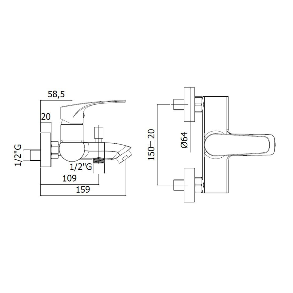 Caractéristiques du mitigeur de baignoire mural 150 mm, à levier, sans set de douche, Swiss Aqua Technologies Project, noir mat (SATBSPRO222C) :