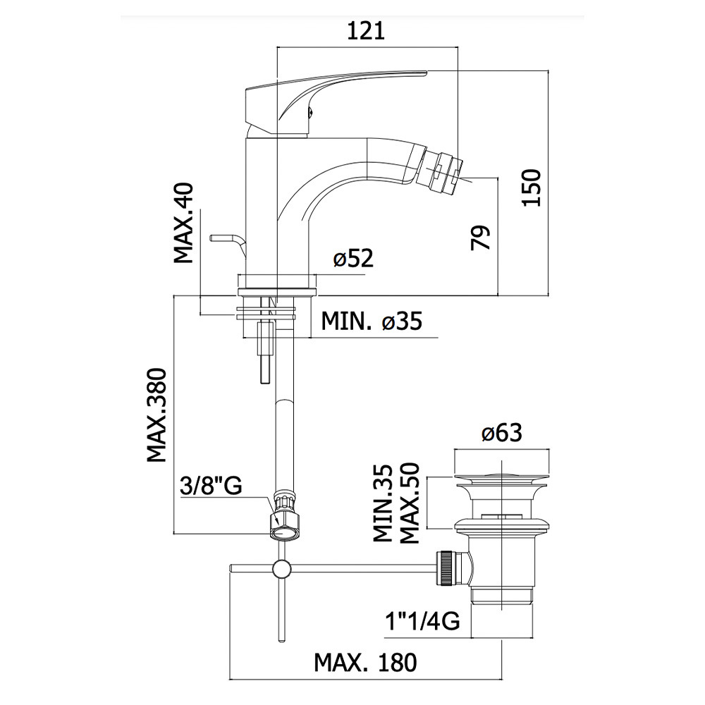Caractéristiques du mitigeur monocommande 1/2" bidet, chromé (32929002):