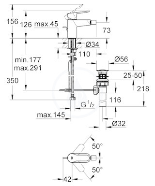 Caractéristiques du mitigeur monocommande 1/2" Bidet, Grohe, chrome (MitigeurB1) :