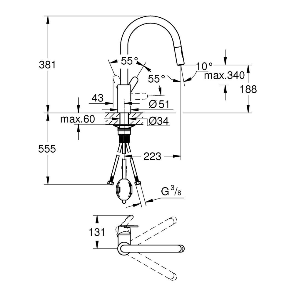 Grohe Get mitigeur monocommande évier "col de cygne" avec douchette extractible 2 jets (31484001)