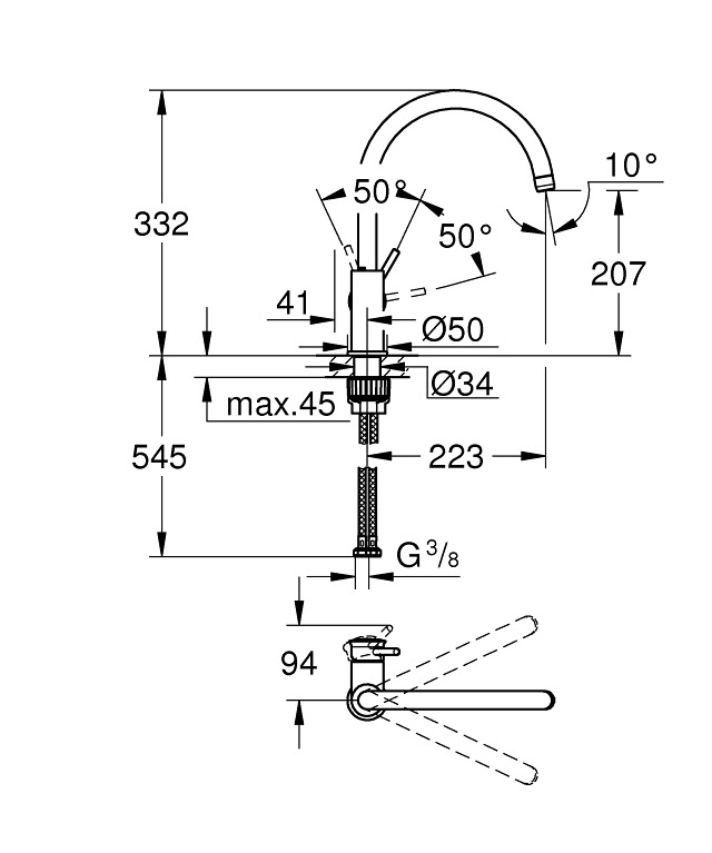 Caracteristiques du mitigeur monocommande évier, GROHE Start Classic, chrome (31553001) :