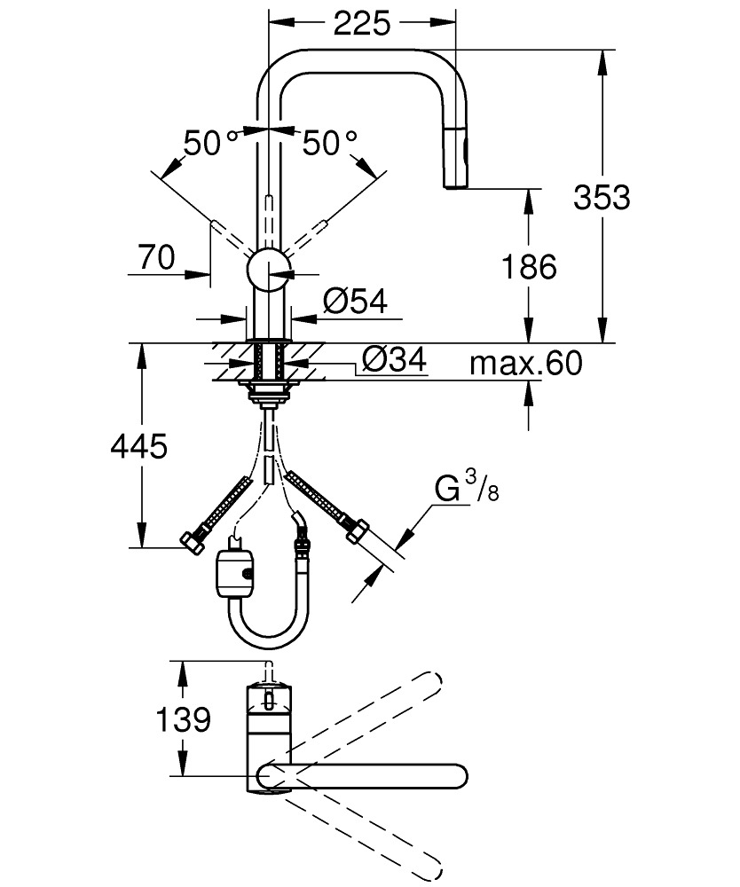 Caracteristiques du mitigeur monocommande évier, GROHE Flair, chrome (32455001) :
