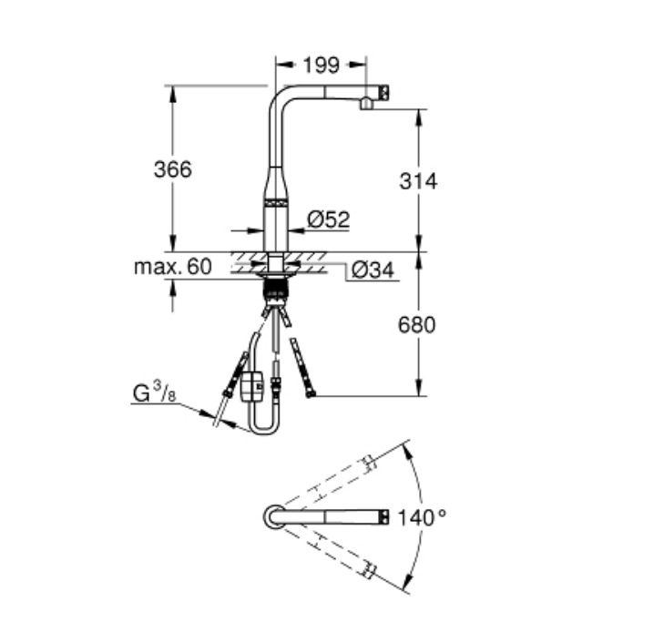 Caractéristiques du mitigeur d'évier Essence Smartcontrol hard graphite (31615A00) :