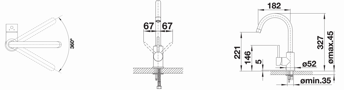 - Plus grande flexibilité autour de l'évier : la plage totalement pivotante à 360 ° est non seulement facile à installer, mais également idéale pour les îlots de cuisine