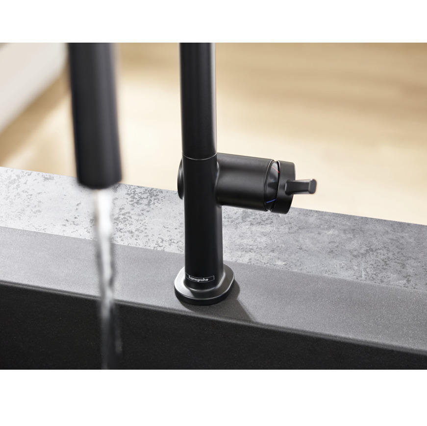 Hansgrohe Talis M54 Mitigeur de cuisine 210, avec douchette extractible 2 jets, Noir mat (72800670)
