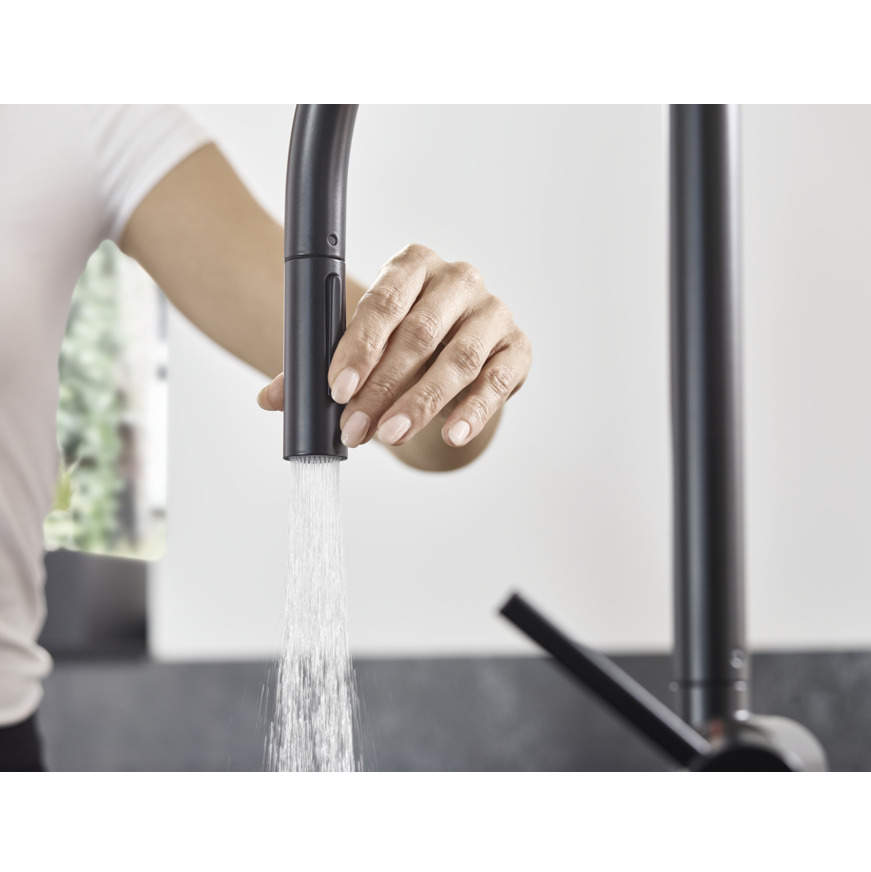 Caractéristiques du Mitigeur de cuisine 210, avec douchette extractible 2 jets, Noir mat (72800000) :