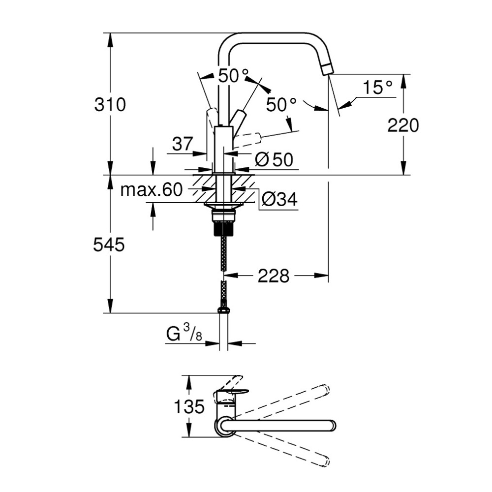 Caractéristiques du mitigeur monocommande évier avec Limiteur de débit, Chrome Grohe Start (30470000) :