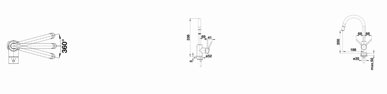 - Plus grande flexibilité autour de l'évier : la plage totalement pivotante à 360 ° est non seulement facile à installer, mais également idéale pour les îlots de cuisine