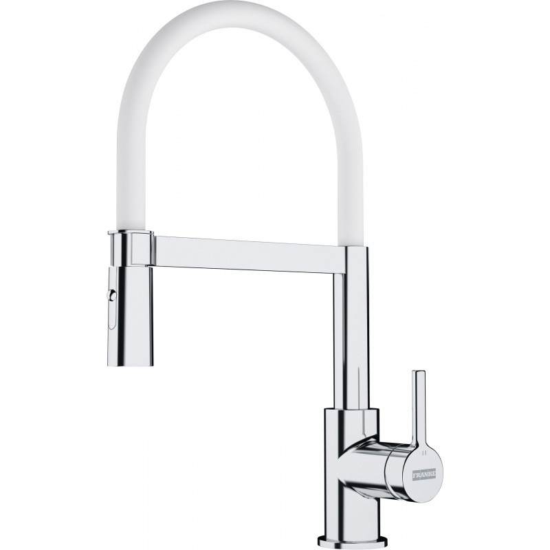 Franke Lina FC 6087.031 Mitigeur cuisine, 205 x 410 mm, semi-pro avec douchette extractible, Chrome/Blanc (115.0626.088)