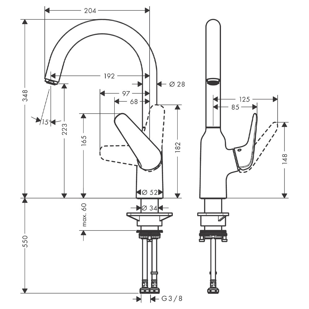 Hansgrohe Focus M42 Mitigeur de cuisine 220, 1 jet, bec orientable à 360°, chromé