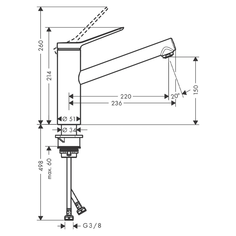 - comprenant: mitigeur de cuisine, raccordement flexibles, set de fixation, instruction de montage