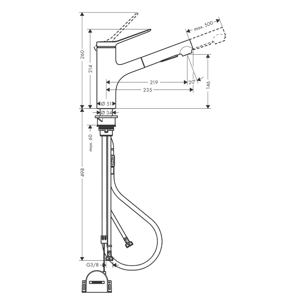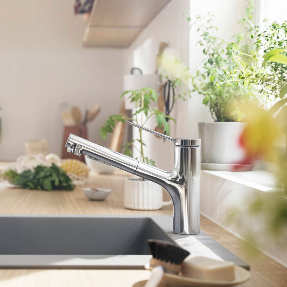 Caractéristique du Zesis M33 mitigeur de cuisine 150 avec douchette extractible 2 jets, sBox, Chrome (74803000):