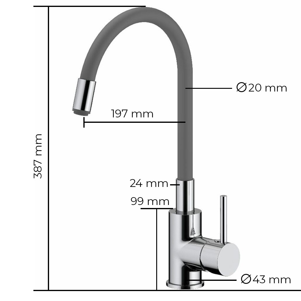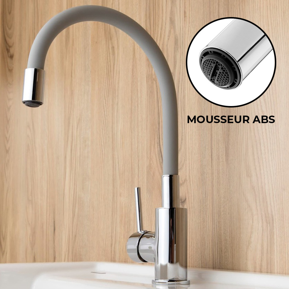 Siko mitigeur cuisine à mémoire de forme, courbe en silicone gris (SIKOBSLPRO290S)
