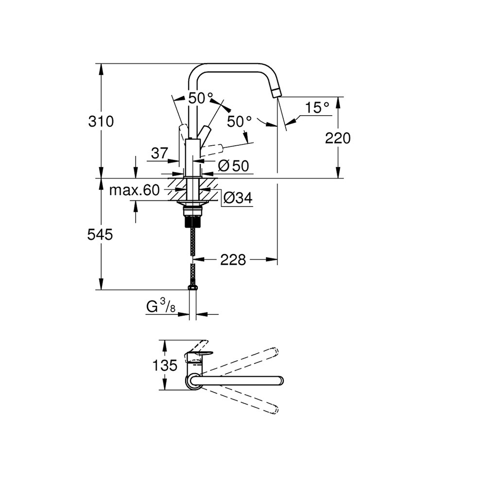 - Douchette extractible:Non