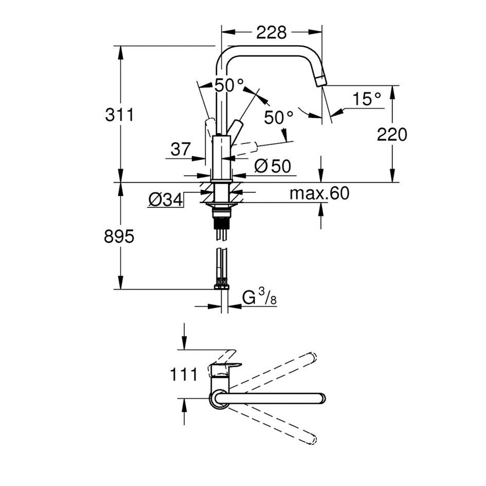 Grohe START DN 15 Mitigeur monocommande d'évier, Bec mobile, Chrome (30630000)