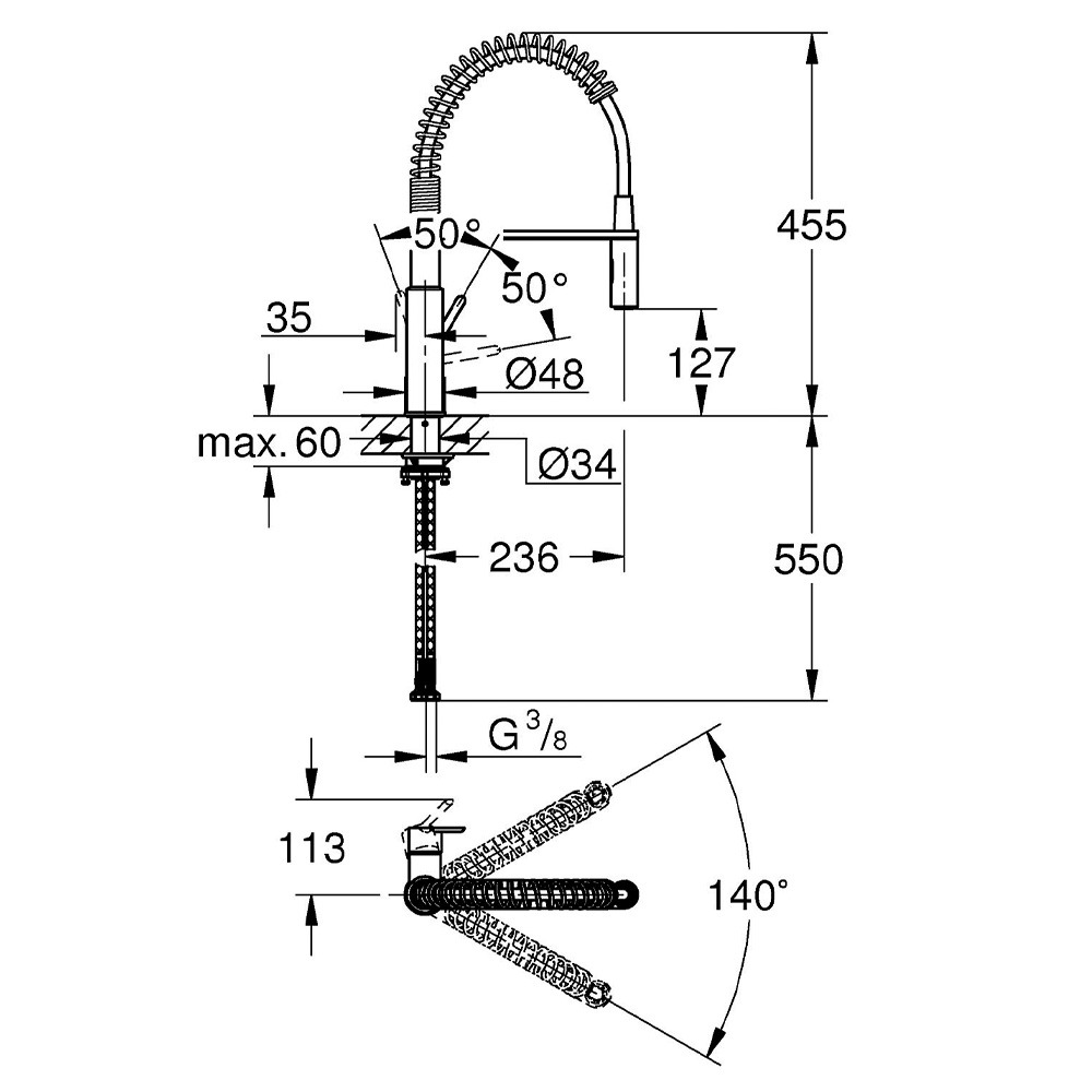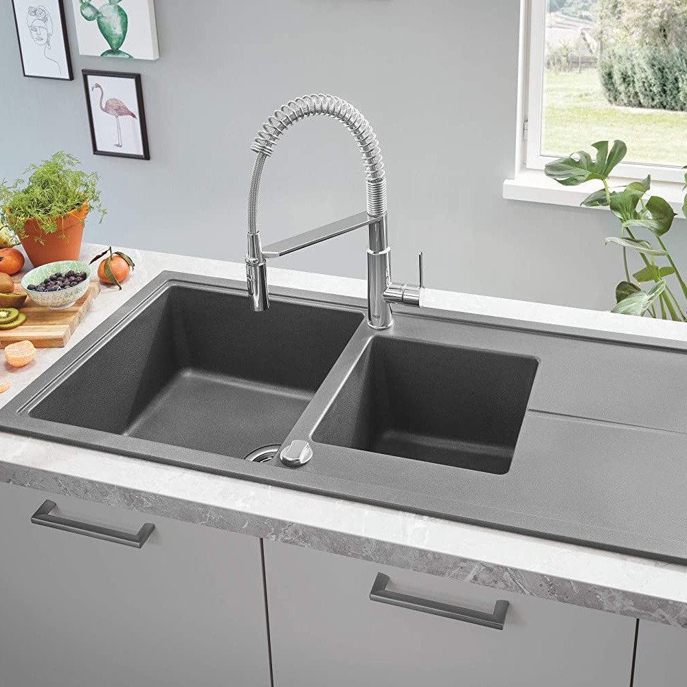 Grohe Quickfix Mitigeur cuisine semi-pro avec ressort et douchette 2 jets, Chrome (MM300306010000)