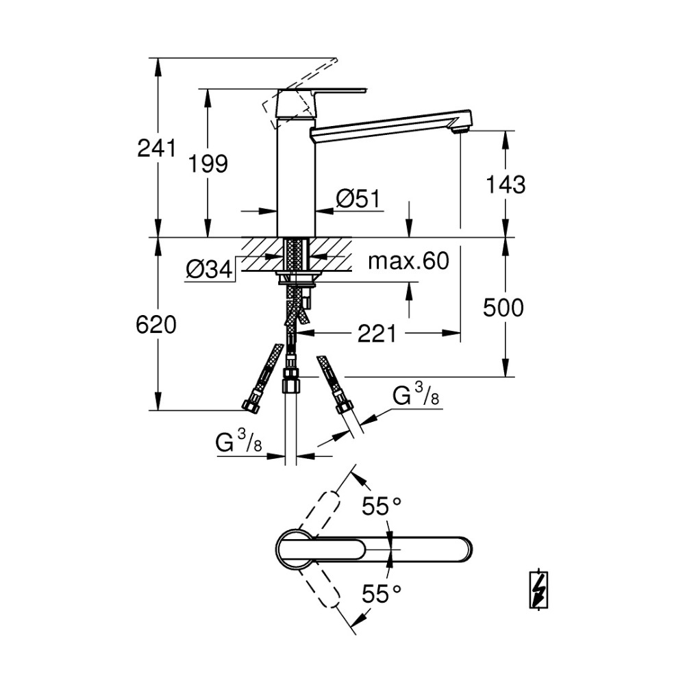 Caractéristiques du Mitigeur evier, Grohe Get, chrome (30197000) :