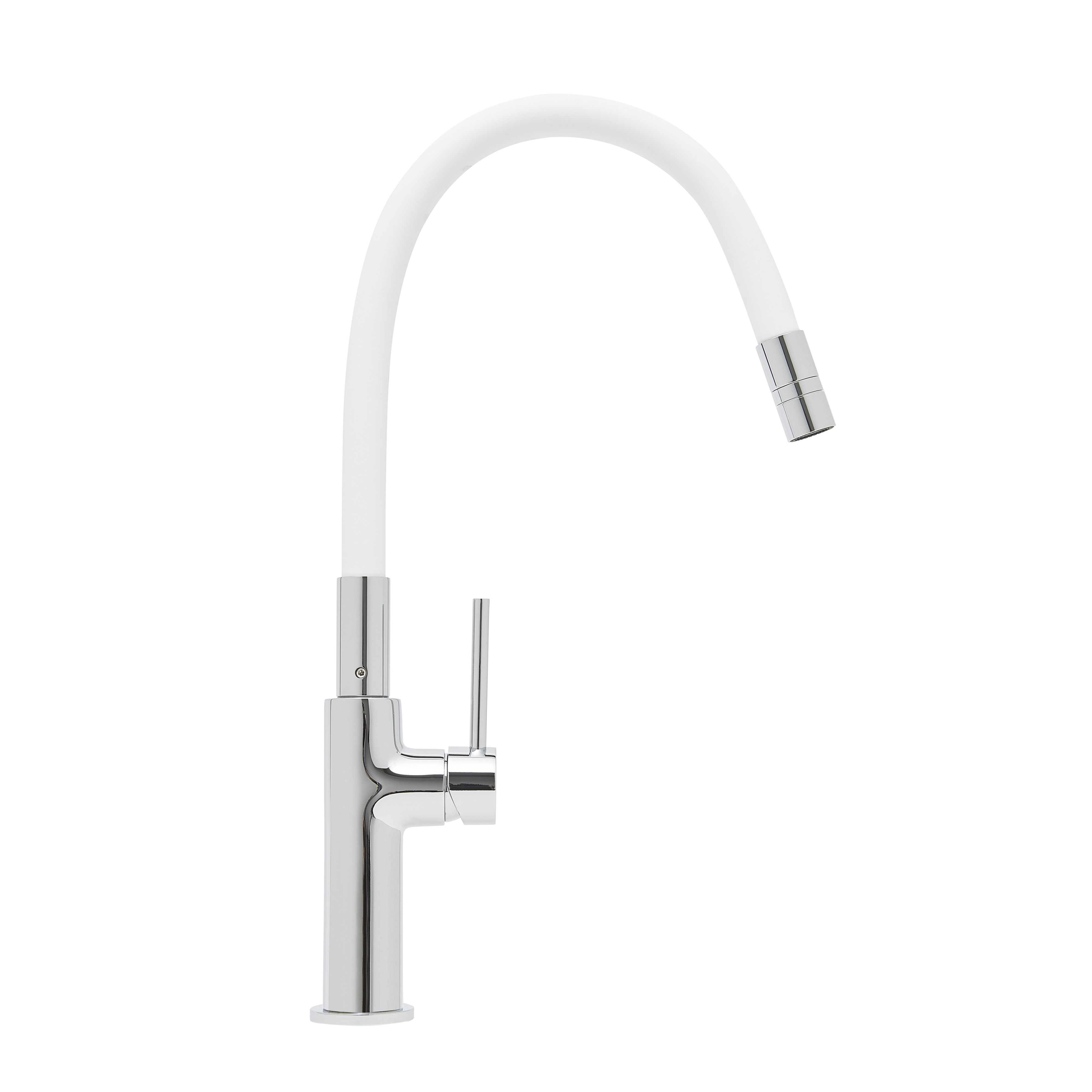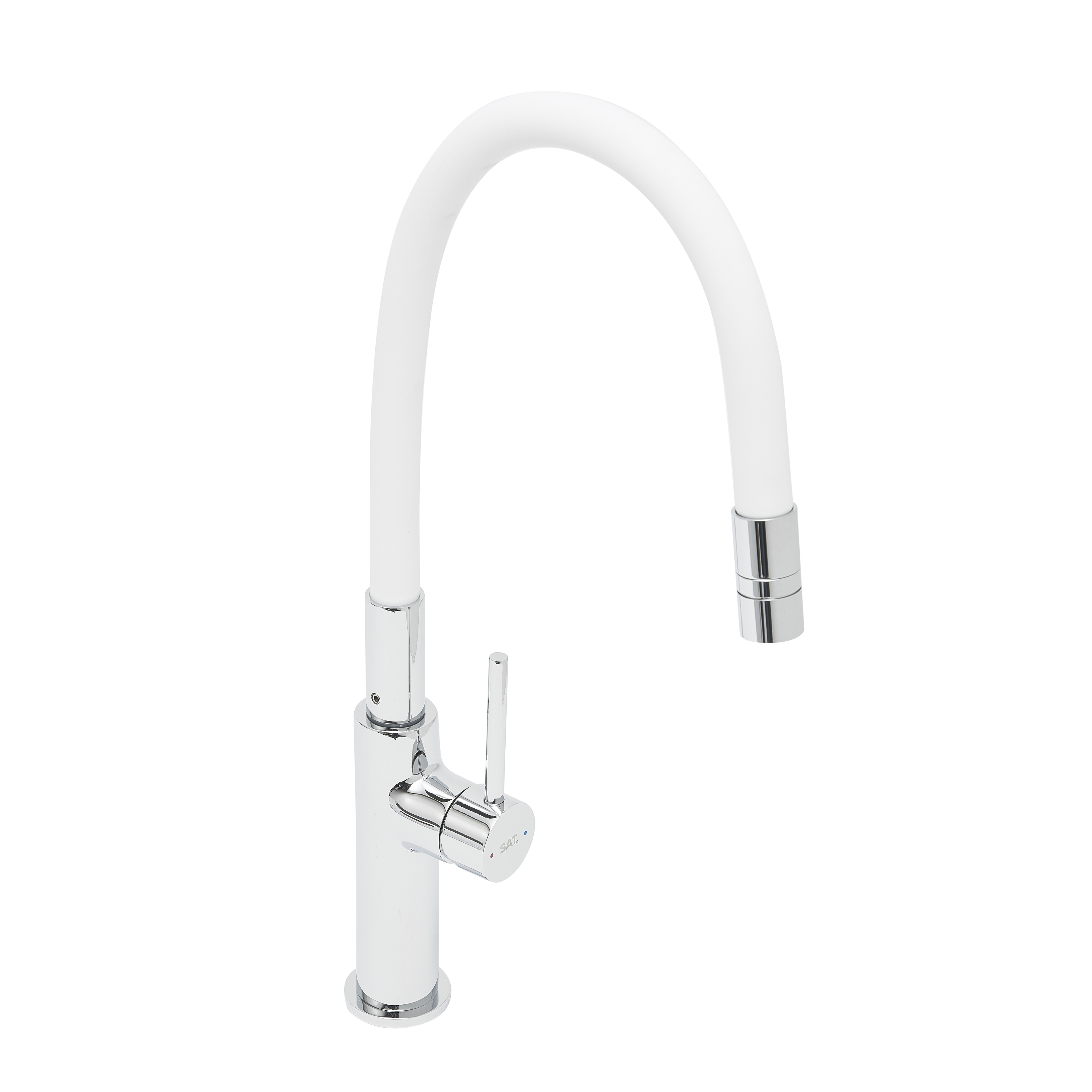 Caractéristiques du Mitigeur pour évier de cuisine, bec flexible en silicone, aérateur Neoperl®, cartouche en céramique, blanc/chrome (SATBSD290B)