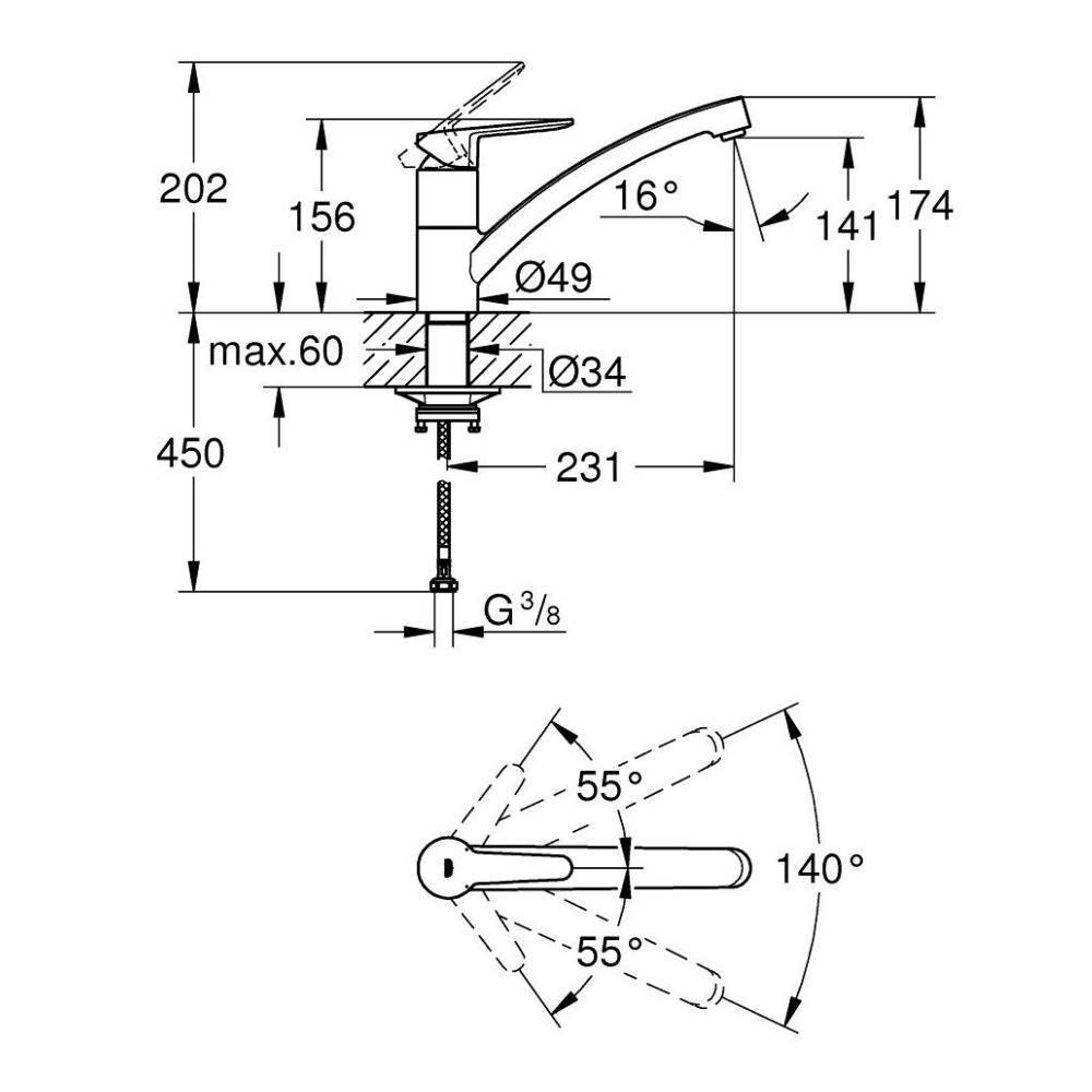 Caractéristiques du mitigeur d’évier monocommande 1/2" , chrome Grohe Bau Eco (G31680000) :