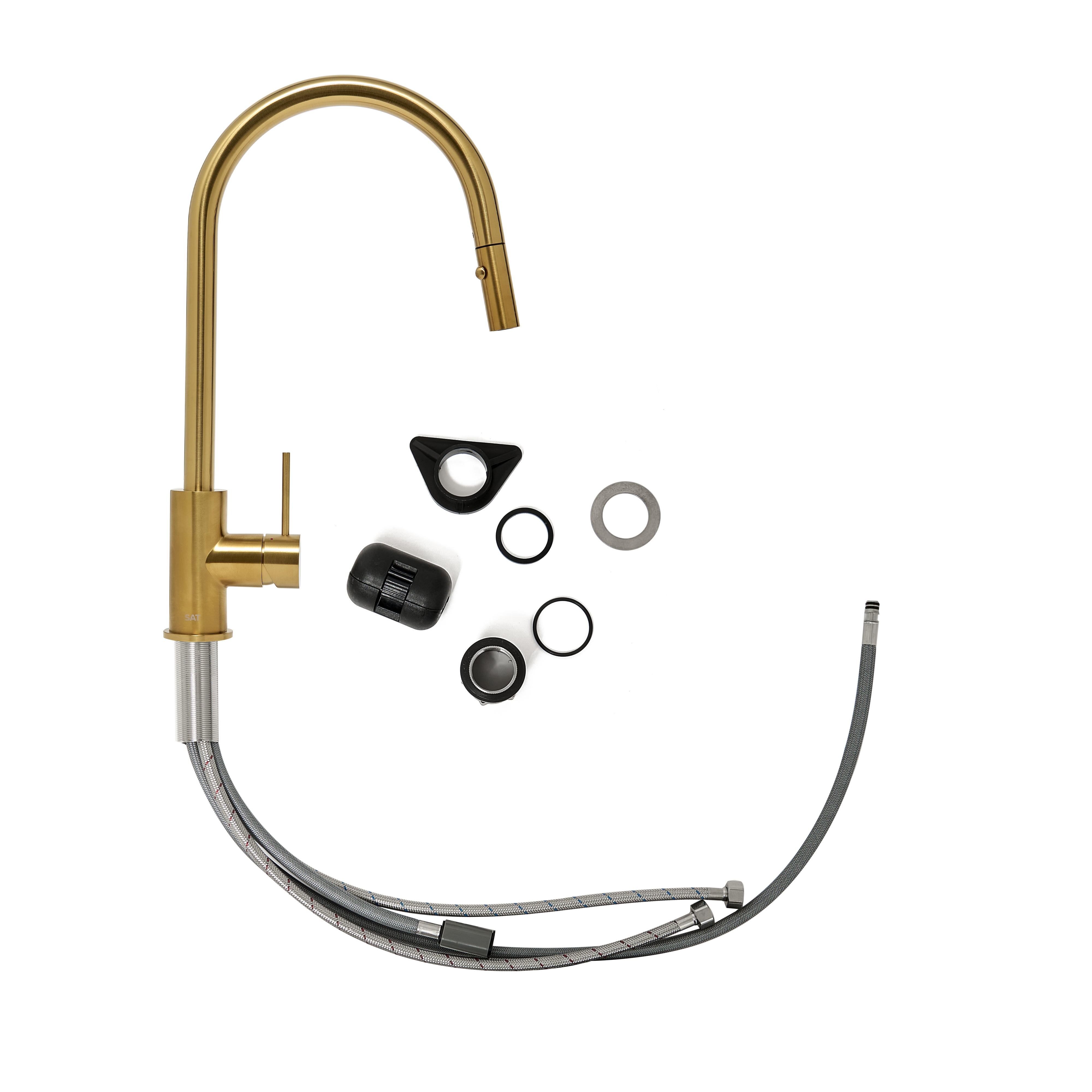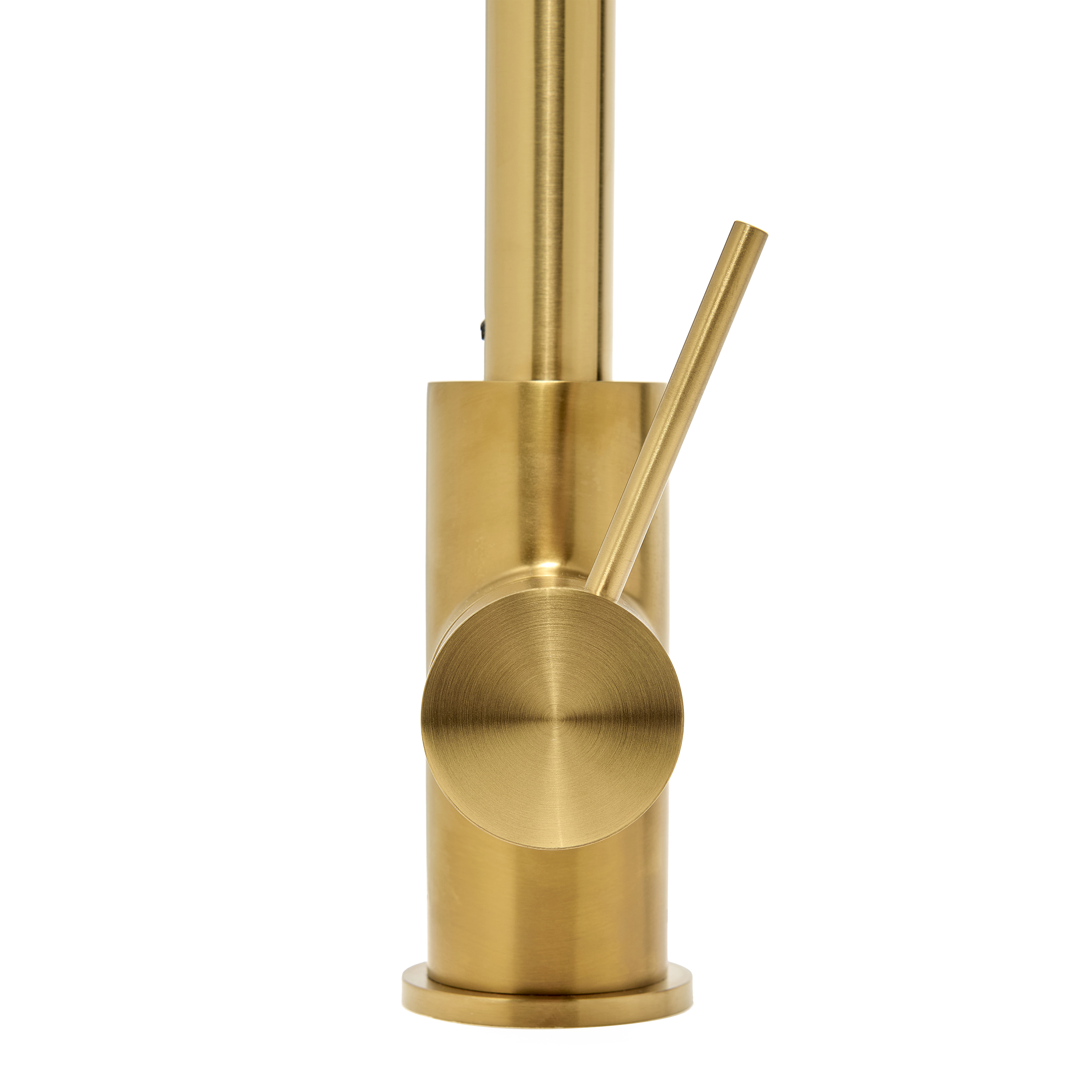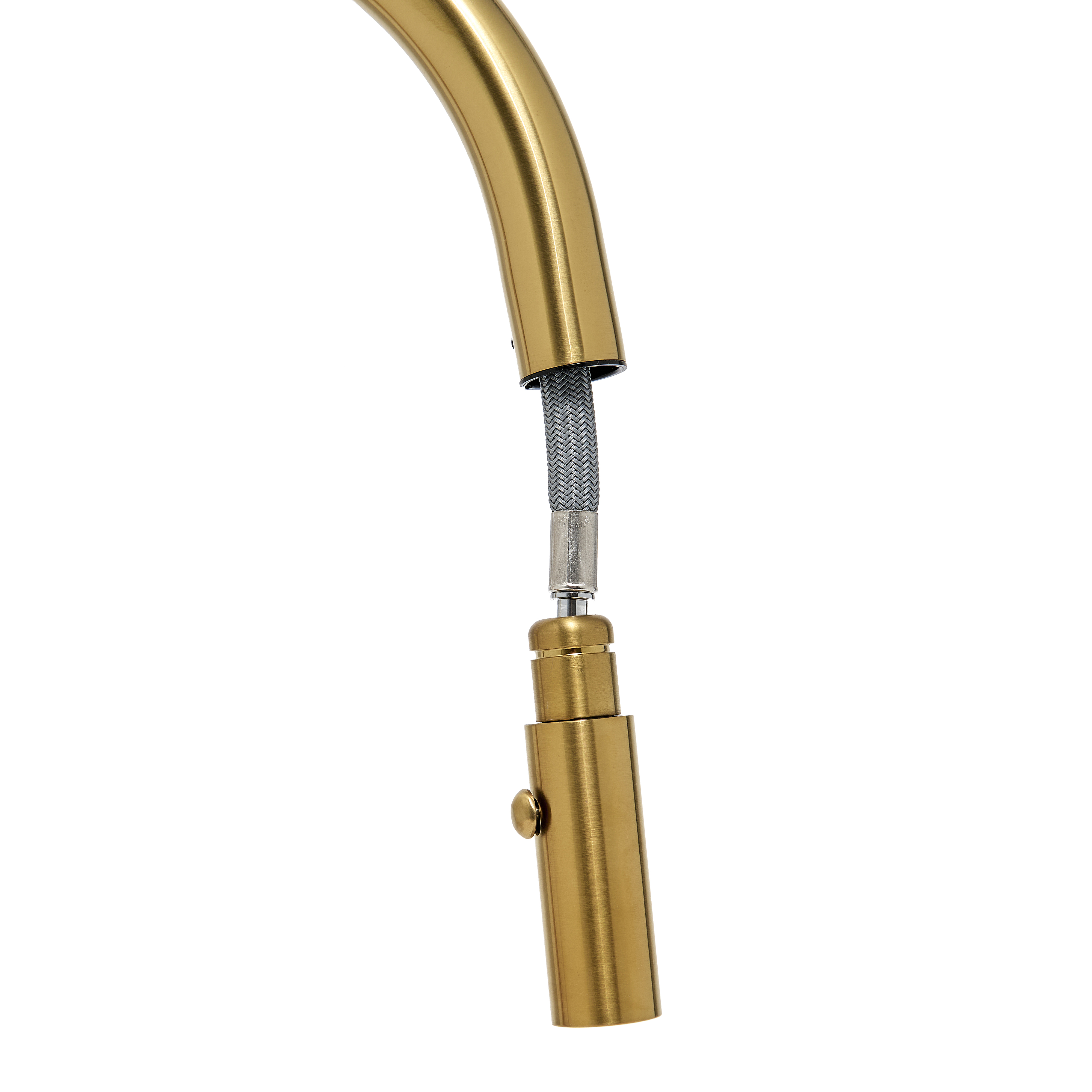 Caractéristiques du mitigeur évier à levier sur pied 44 cm avec douchette extractible 2 jets, Swiss Aqua Technologies (SAT) Aurum, or brossé (SATBAUR286BG) :